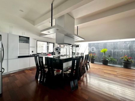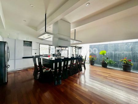 La zona privada cuenta con un family room y tres recámaras de gran tamaño, todas con vestidor y baño completo. La recámara principal destaca por su doble toilette, doble regadera, vapor, jacuzzi y una pequeña alberca privada, además de acceso directo al jardín y terraza.