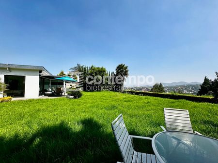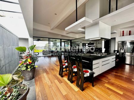 Para mayor comodidad, la casa dispone de cuarto de servicio con baño completo, área de lavado y tendido, bodega, cisterna de 10,000 litros, dos tinacos de 1,100 litros cada uno, hidroneumático y cuatro lugares de estacionamiento con portón eléctrico.